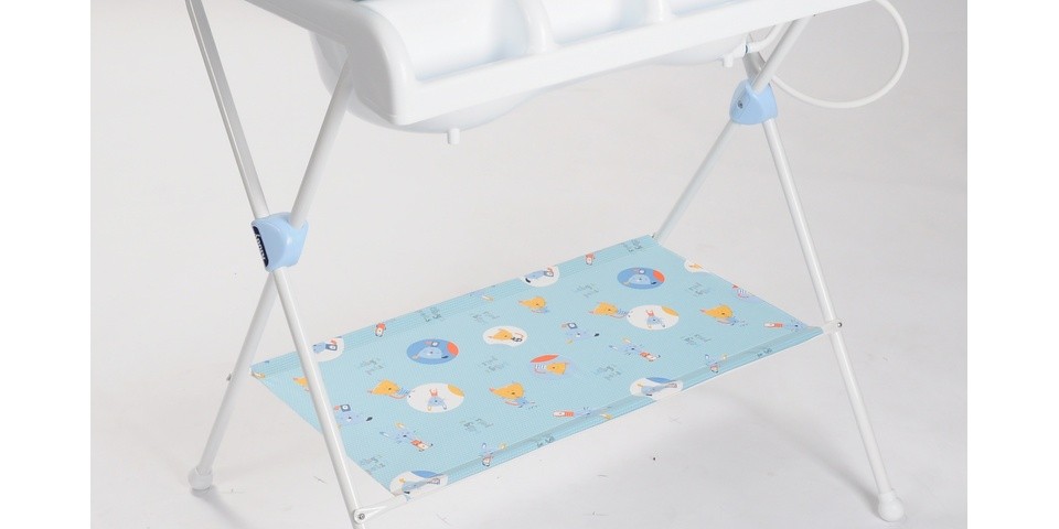 Catre de baño. Laterales protectores. Incluye cambiador y bandeja portaobjetos. Manguera para desagüe. Estructura reforzada. Plegado compacto. Edad recomendada 0 a 12 meses.
