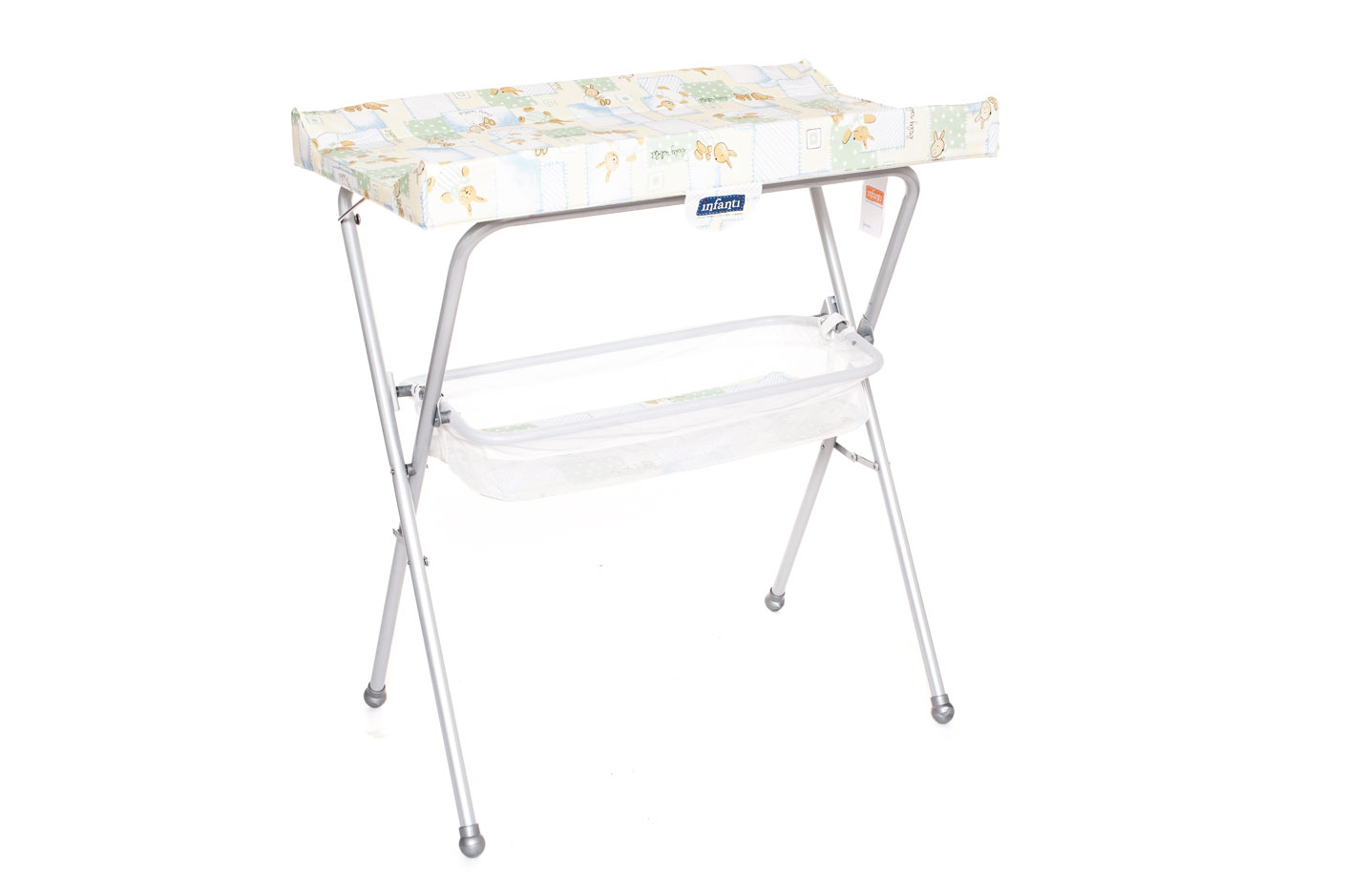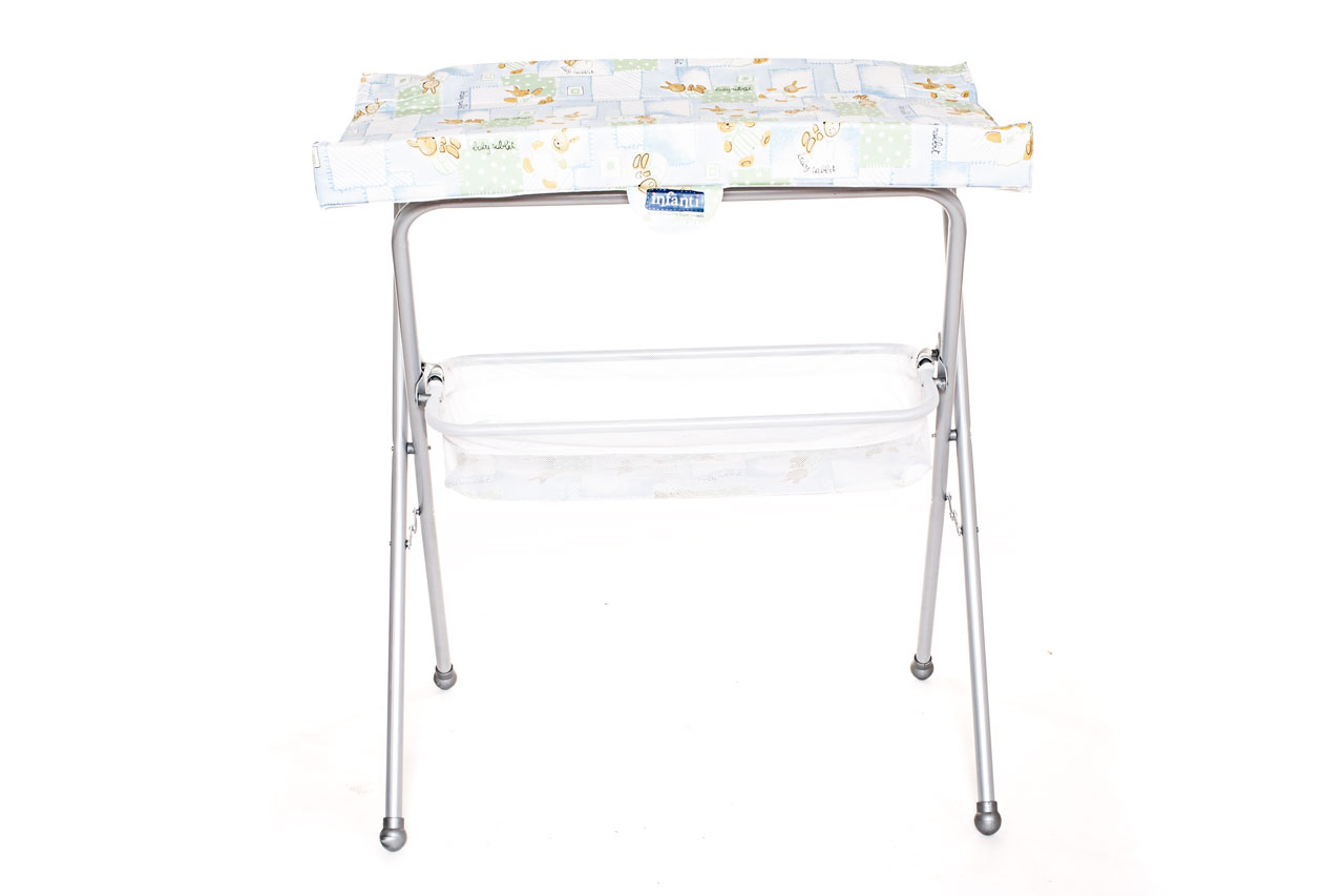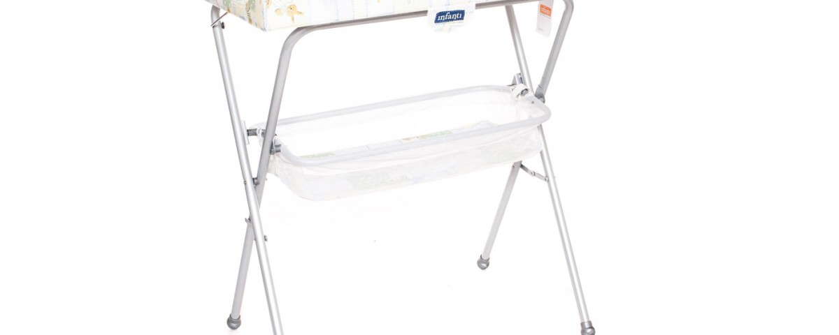 Catre de baño, bañera rígida,plegable tipo tijera, cambiador acolchado.estante.