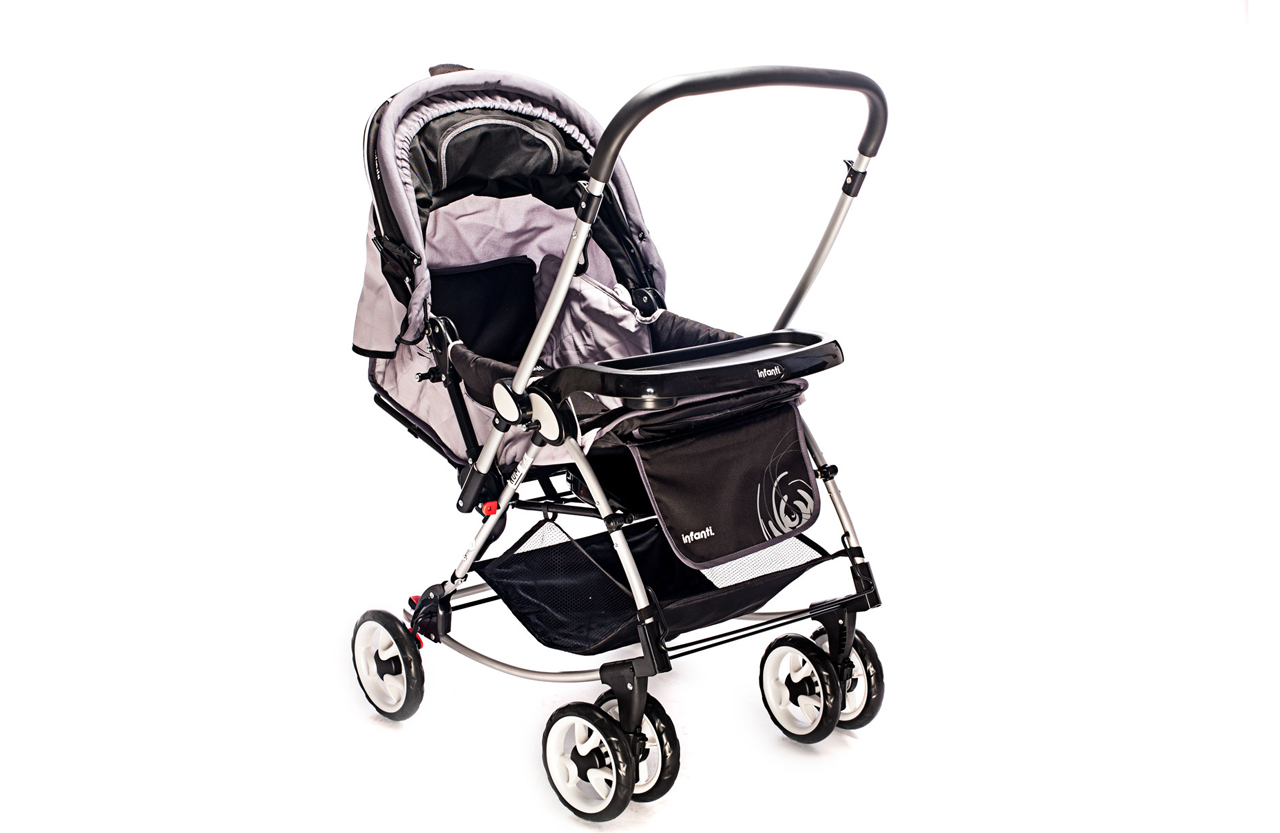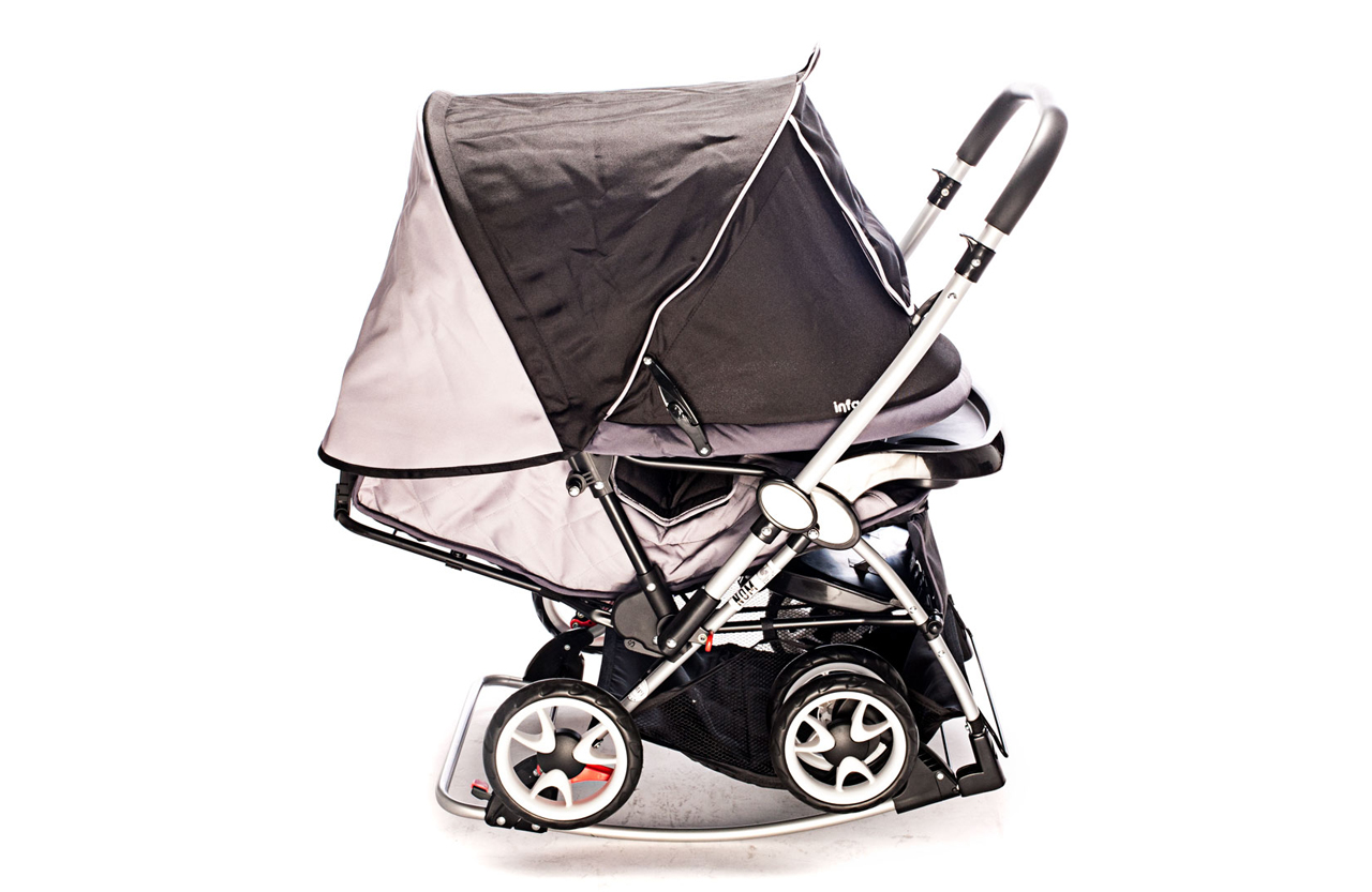 Coche cuna hamaca, manija revatible, cover desmontable, bandeja delantera.