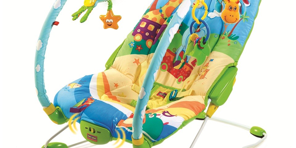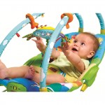 Mecedora con actividades. Sistema de arcos ajustables para colgar los juguetes que se mueven hacia al costado para facilitar el acceso al bebé. Juguetes que pueden ajustarse fácilmente a lo largo de los arcos. Juguete con luz y música que se puede activar por el bebé. Vibración con efectos calmantes.